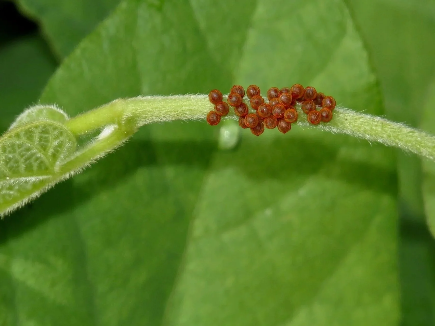 A female Pipevine Swallowtail will typically first fly several low circuits above the host plant. Next, it will do a couple of touchdown circuits, where it briefly alights on maybe 15 or 20 different leaves. Most will be leaves of the host plant, but a few times it may land on the host plant’s host plant (the bush that the Pipevine is twined around). Female butterflies are equipped with a scratch-and-sniff chem lab -- in the form of chemoreceptors on their legs and antennae -- that they use to identify whether scratching a given plant causes it to emit the volatile organic compounds that should be emitted by its host plant.