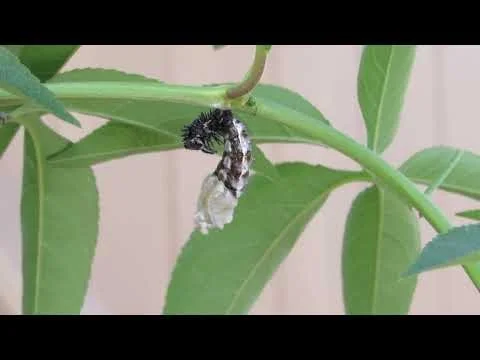 The video shows the last stage of a Gulf Fritillary pupa sloughing off its skin. The skin is already bunched up near the top at the beginning of the video. Amazing how athletic the whole routine is.