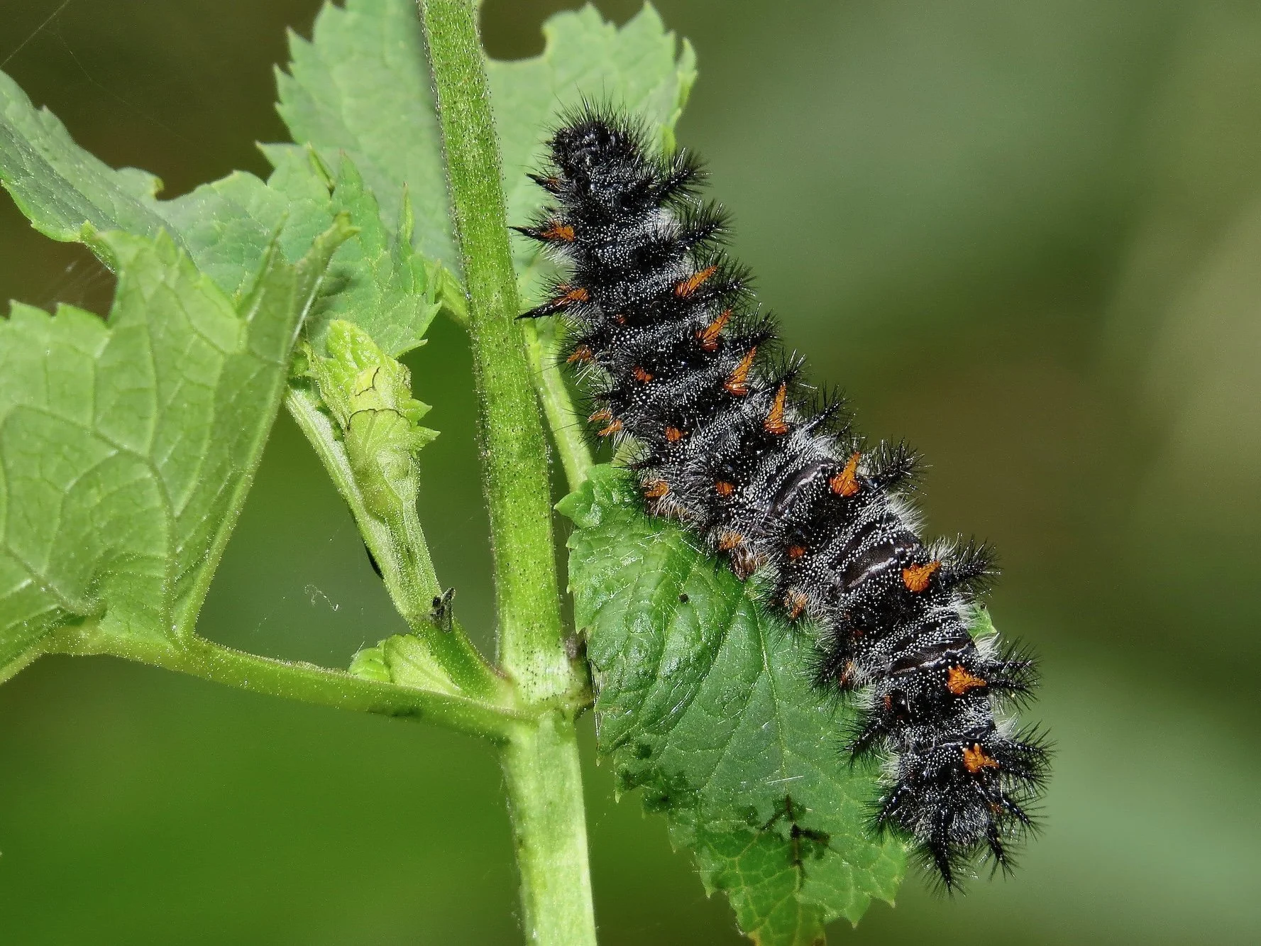 Partially grown caterpillars overwinter (overwintering is a state of dormancy akin to hibernation), hiding under rocks or in litter. The season begins with sightings of these overwintering caterpillars in February. Adults live for about 15 days. Males are highly territorial. (BAMONA — Butterflies and Moths of North America — says “Third- and fourth-stage caterpillars hibernate“, but that wording needs to be revised in the light of recent observations of much smaller caterpillars at the start of the season.)