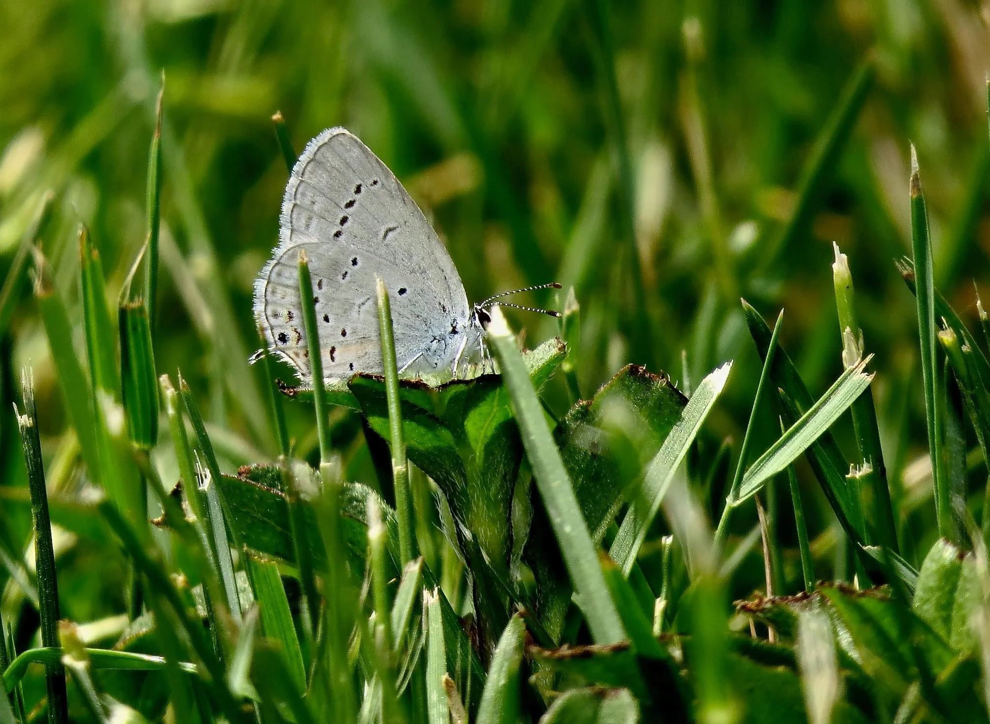 Like Gray Hairstreak, and Acmon Blue, it has a mutualistic relationship with ants (both species benefit). The ants protect the caterpillars from predators in exchange for the sweet “honeydew” the caterpillars secrete from a nectary gland. Roughly three-fourths of butterflies in the Lycaenidae family have a relationship with ants, but not always mutualistic.